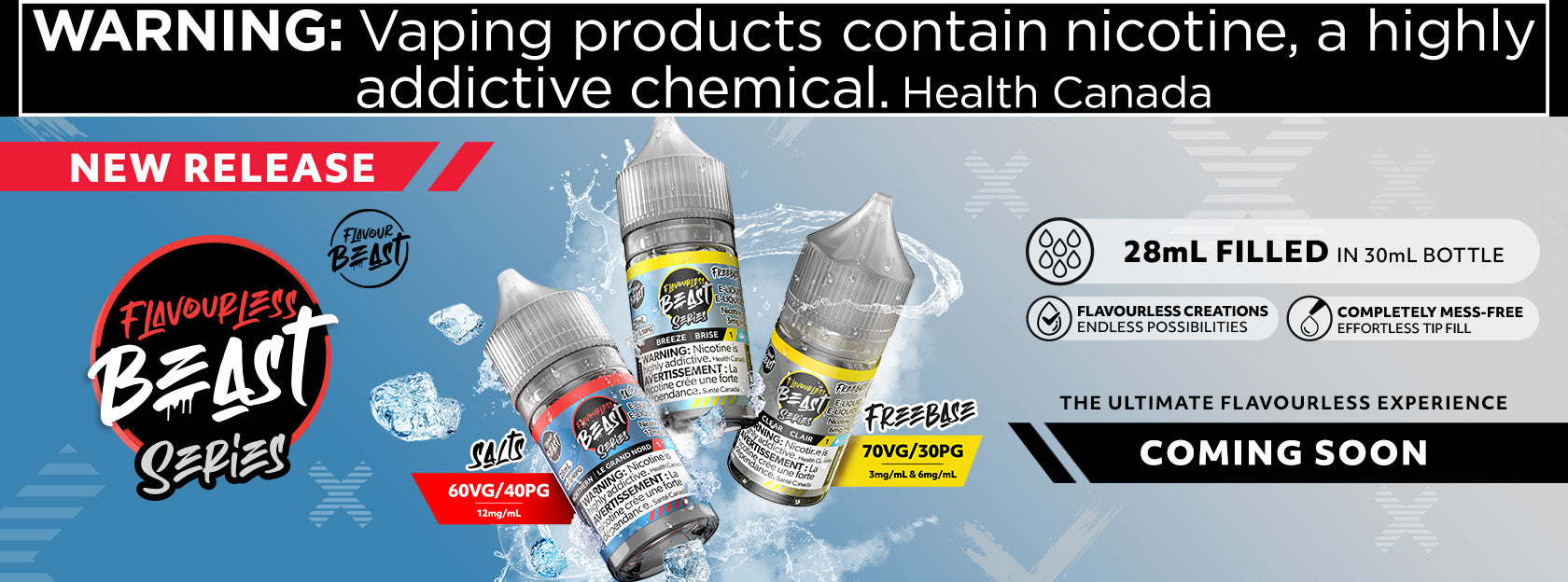 WARNING: Vaping products contain nicotine, a highly addictive chemical. - Health Canada